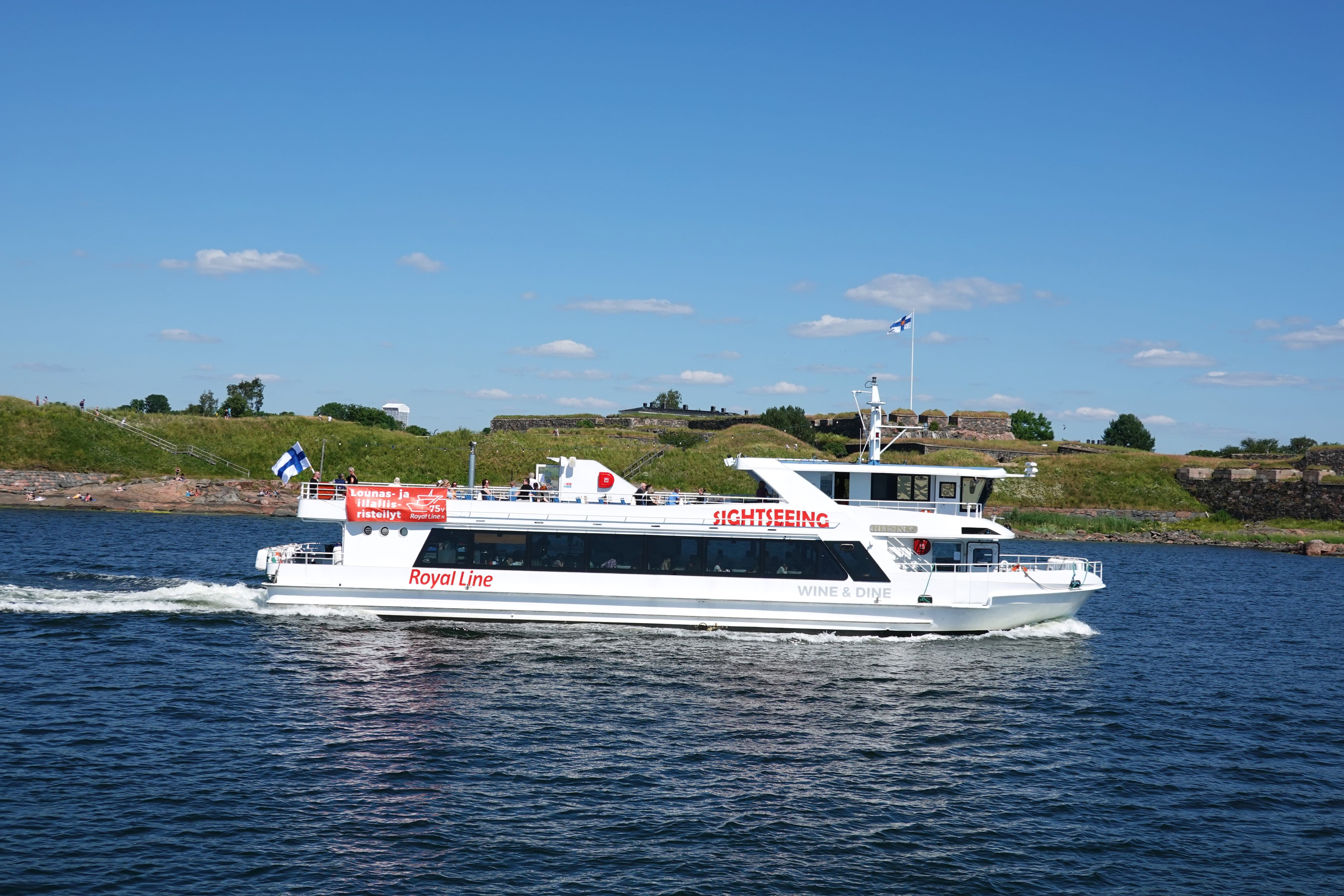 Lähde Royal Linen mukana risteilylle Helsingin upean saariston läpi. Nauti kaupungin näkymistä, sen modernista arkkitehtuurista ja historiallisista maamerkeistä. Rentoudu ja ota aurinkoa tilavalla aurinkokannellamme. Hengitä raikasta merituulta ja nauti auringonpaisteesta.