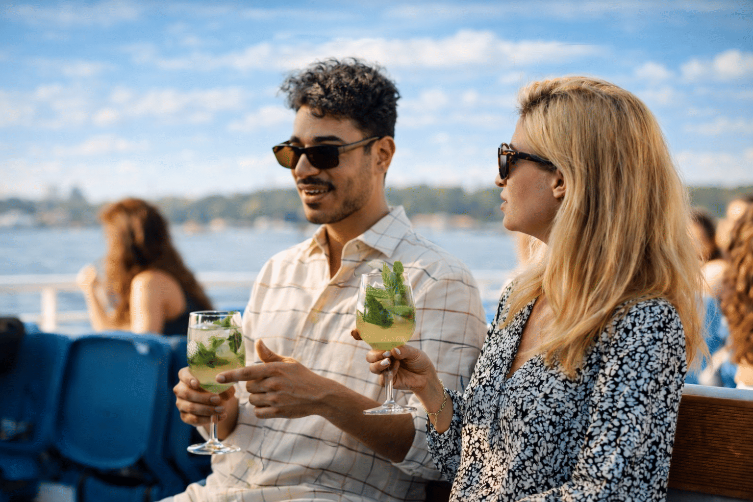 Détendez-vous sur notre spacieux pont ensoleillé. Profitez de la fraîche brise marine et laissez-vous dorloter par le soleil. Notre bar est ouvert pour vous servir des rafraîchissements et des collations tout en admirant le paysage.